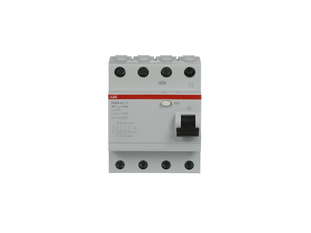 Popis: FH204AC-40/0,03; proudový chránič; čtyřpólový; jmenovitý proud: 40 A; citlivost: 30 mA; Typ: AC – pro střídavý reziduální proud (určeno pro obecné zátěže).
