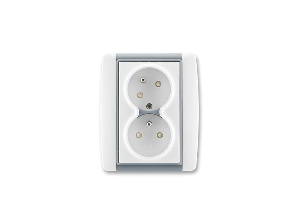 Zásuvka dvojnásobná chráněná s clonkami, bezšroub. svorky; bílá/ledová šedá