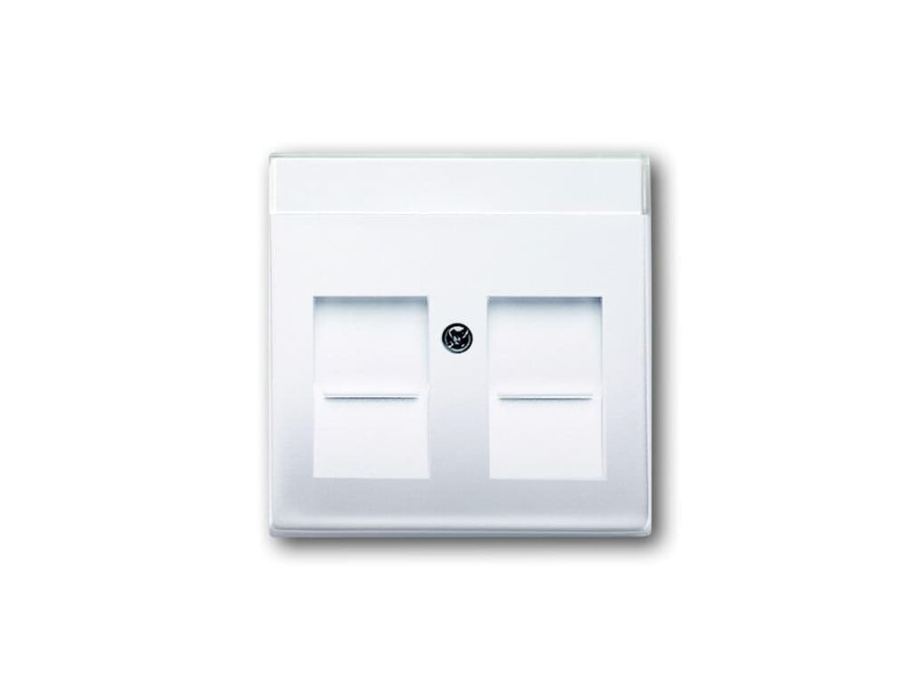 Kryt s popisovým polem a krycími clonkami, pro dvě komunikační zásuvky keystone.