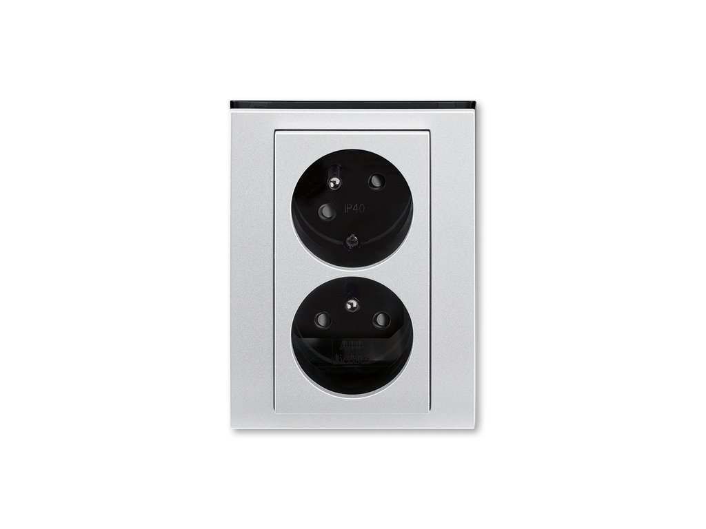 Zásuvka dvojnásobná s ochr. kolíky, s clonkami, s natočenou dutinou; titanová/kouř. černá