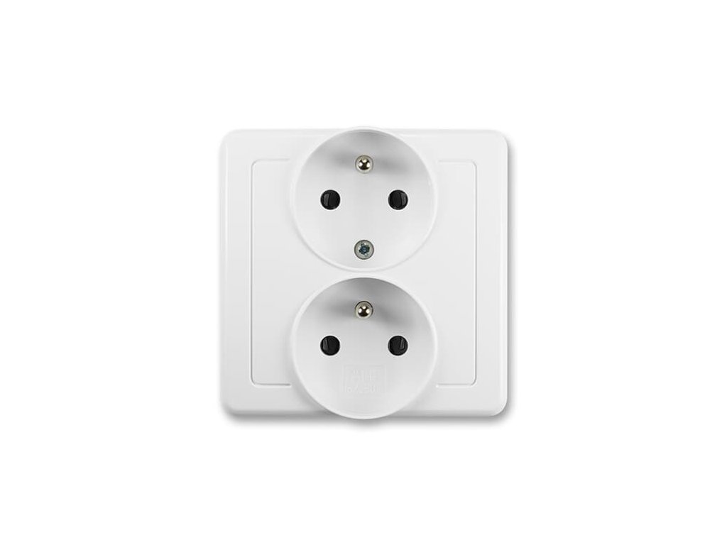 Zásuvka dvojnásobná polozapuštěná s ochrannými kolíky; jasně bílá