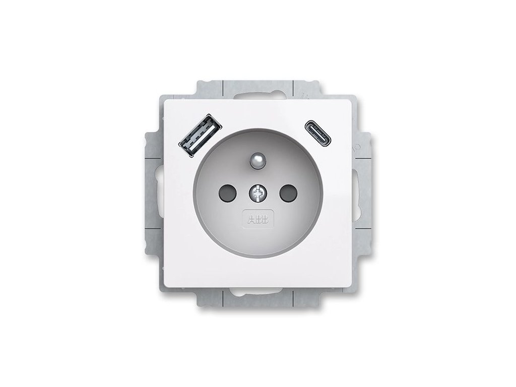 ABB ZONI Zásuvka 5569T-A32357 500 jednonásobná s clonkami, s nabíjením USB-A, USB-C, bílá