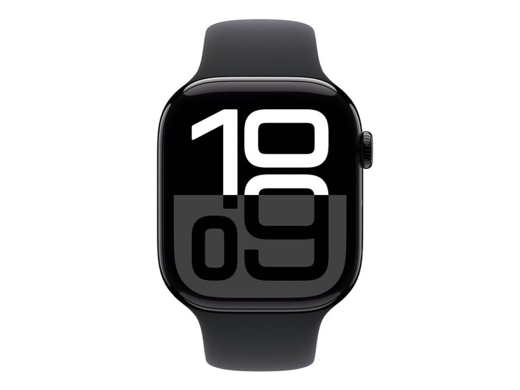 Apple Watch Series 10 GPS 46mm Klavírně černý hliník s černým sportovním řemínkem - M/L