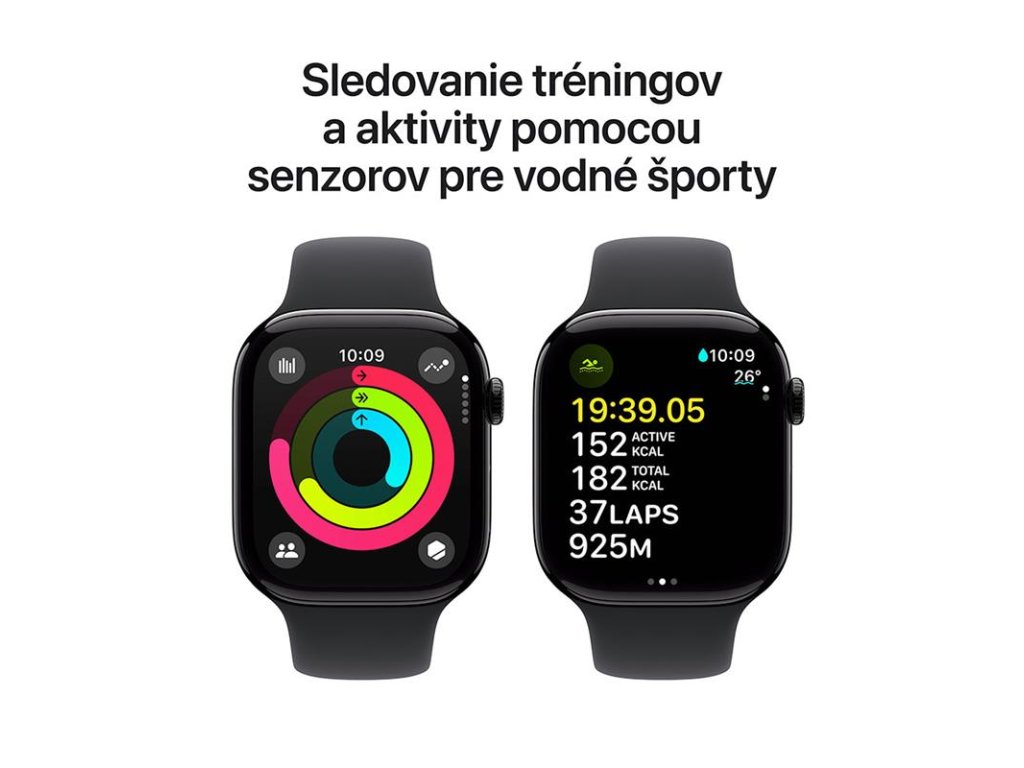 Apple Watch Series 10 GPS 46mm Klavírně černý hliník s černým sportovním řemínkem - S/M