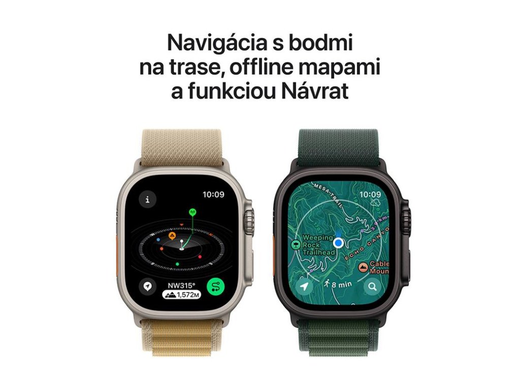 Apple Watch Ultra 2, dokonalé sportovní a dobrodružné hodinky, jsou nyní dostupné v saténově černém titanovém provedení. Jsou vybaveny vícedenní výdrží baterie, přesným dvoufrekvenčním GPS a vůbec nejjasnějším displejem Apple. Má také odolné titanové pouzdro, safírové přední sklíčko a přizpůsobitelné tlačítko Action. PROČ APPLE WATCH ULTRA 2-Seznamte se s dokonalými sportovními a dobrodružnými hodinkami. Pokročilé funkce pro běžce, cyklisty, plavce, turisty, potápěče a další. Odolné titanové pouzdro, nyní dostupné v saténové černé barvě. Superjasný Always-On Retina displej. Neuvěřitelně přesné přesné dvoufrekvenční GPS. Výkonné funkce pro zdraví, bezpečnost a konektivitu. A výdrž baterie až 36 hodin při běžném používání a 72 hodin v režimu nízké spotřeby. EXTRÉMNĚ ODOLNÉ, NEUVĚŘITELNĚ SCHOPNÉ-49 mm titanové pouzdro odolné vůči korozi. Safírové přední sklíčko. Velká korunka Digital Crown a přizpůsobitelné tlačítko Action pro okamžité ovládání různých funkcí. Testováno podle MIL-STD 810H. Vodotěsnost 100m. SVOBODA CELULÁRNÍ SVOBODY-S plánem mobilních služeb můžete volat a psát, aniž byste měli iPhone nablízku. Streamujte svou oblíbenou hudbu a podcasty. Získejte trasu pomocí Map MAXIMALIZUJTE SVŮJ TRÉNINK-Pokročilé metriky, zobrazení a zkušenosti v aplikaci Workout, včetně zón srdeční frekvence, vlastních tréninků a tréninkové zátěže, které vám mohou poskytnout přehled o vlivu vašich tréninků na vaše tělo v průběhu času. PRO BĚŽCE-Precizní dvoufrekvenční GPS pro neuvěřitelnou přesnost. Automatická detekce trasy. Pokročilé metriky běžícího formuláře, které vám pomohou pochopit, jak efektivně běháte. Přizpůsobitelné tréninky, které mohou zahrnovat zahřátí, intervaly zotavení a čas na ochlazení. PRO CYKLISTY-Výkonné metriky posouvají vaši jízdu na kole na další úroveň. Prohlédněte si svou rychlost, tepovou frekvenci a nadmořskou výšku v zobrazeních tréninku. Spusťte cyklistické cvičení z hodinek a na vašem iPhone se automaticky zobrazí jako Živá aktivita, díky čemuž bude lépe vidět. Připojte se přímo k příslušenství Bluetooth, jako jsou měřiče výkonu, abyste viděli funkční prahový výkon a kadenci. PRO TURISTY-Offline mapy vám umožňují navigovat pouze pomocí hodinek Apple Watch. A aplikace Compass je vybavena základními navigačními nástroji, jako jsou aktuální kurz, nadmořská výška, zeměpisná délka a šířka. Najděte poslední místo, kde jste měli mobilní příjem. Označte svou polohu pomocí trasových bodů kompasu. Pomocí Backtrack zmapujte, kde jste byli, a zopakujte své kroky. PRO PLÁVCE-Automatická detekce zdvihu, počet kol, mezičasy, série a přizpůsobené tréninky pro bazénové plavce. Plavci na volné vodě si mohou zobrazit mapu trasy v souhrnu tréninku. Sledujte příliv a odliv na více než 115 000 plážích po celém světě pomocí aplikace Tides. PRO POTÁPAČE-Plné možnosti potápěčského počítače s aplikací Oceanic+ app. Snímá hloubku do 40 metrů spolu s teplotou vody. Certifikováno podle EN13319. POKROČILÉ FUNKCE ZDRAVÍ A BEZPEČNOSTI-Udělejte si EKG. Získejte upozornění, pokud máte vysoký nebo nízký srdeční tep. Prohlédněte si metriky nočního zdraví. Sledujte kyslík v krvi. A uvidíte, kolik času jste strávili v REM, Core nebo Deep spánku s fázemi spánku. Automaticky se připojte k záchranným službám v případě tvrdého pádu nebo těžké autonehody. A stisknutím tlačítka zavolejte nouzovou pomoc nebo aktivujte sirénu.Kód produktu: ISTAWAPMX5U3