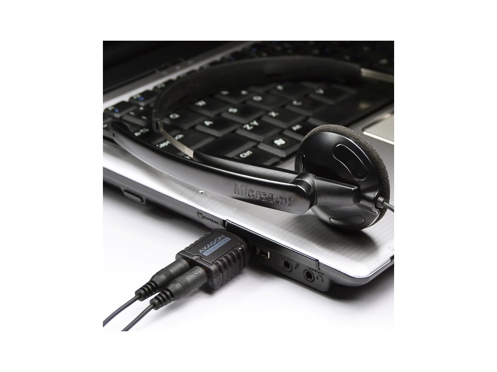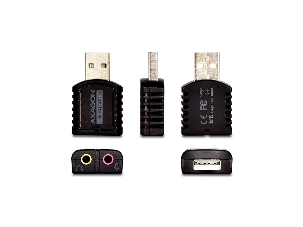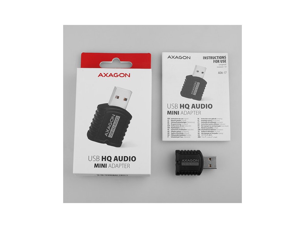 USB HQ audio adaptér AXAGON ADA-17 MINI snadno a rychle doplní počítač o externí USB zvukovou kartu.