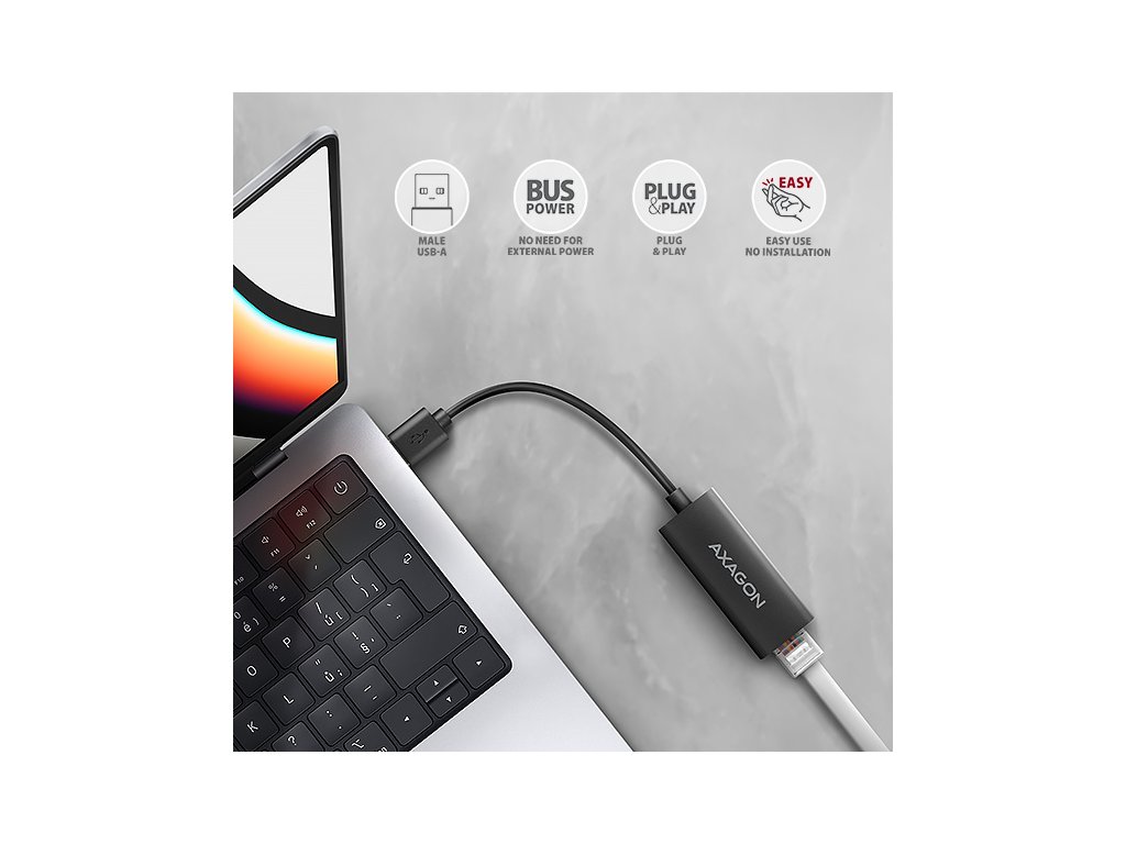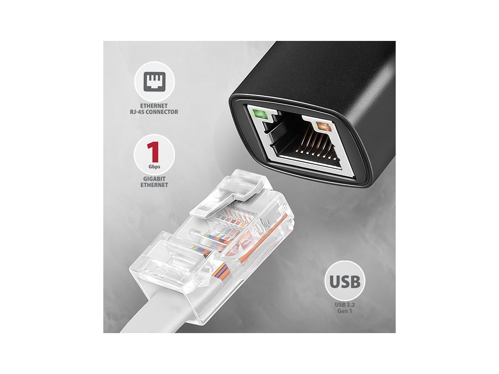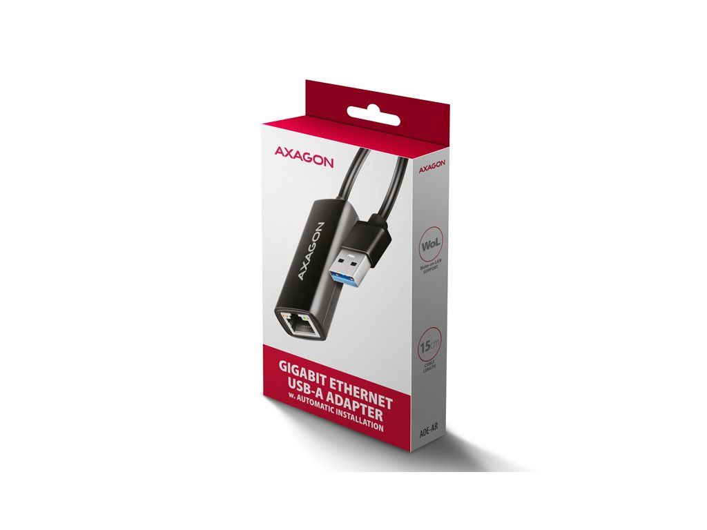 AXAGON ADE-AR, USB-A 3.2 Gen 1 - Gigabit Ethernet síťová karta, Realtek 8153, auto instal