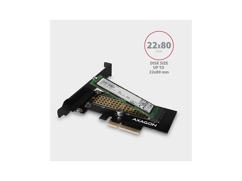 Adaptér podporuje použití NVMe (PCI-Express) M.2 SSD disků, jednostranných i oboustranných. Redukce nemá omezení kapacity SSD disků a lze použít M.2 karty až do rozměru 22x80 mm.