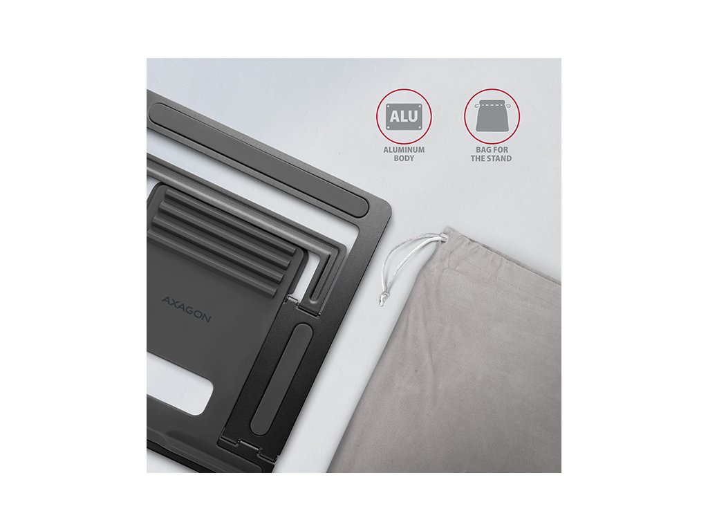 AXAGON STND-L, kovový stojan pro notebooky 10''-17.3'', 4 nastavitelné výšky, šedý