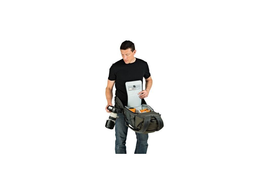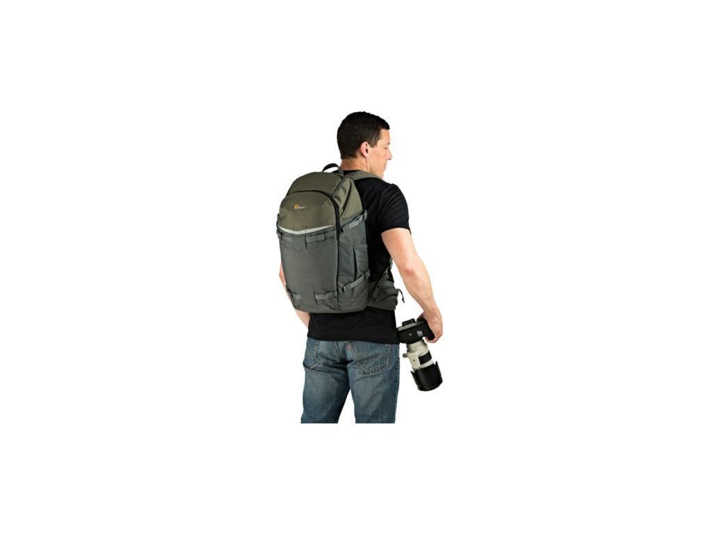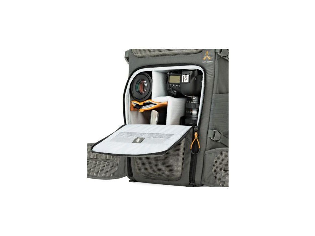 Kvůli výměně objektivu nemusíte celý batoh sundávat ze zad. Díky zadnímu otevírání fotokomory máte přístup do hlavní komory za chůze – přetočením batohu dopředu při zapnutém bederním pásu.