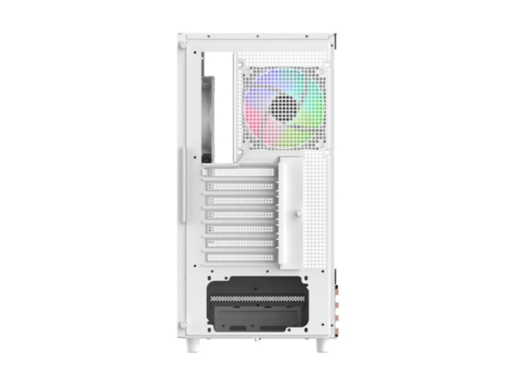 Skříň View 270 Plus WS ARGB Snow Mid Tower Chassis, navržená pro úžasný výhled, je skříň ATX s předním a levým panelem z tvrzeného skla, doplněná stylovým dřevem, a je dodávána s předinstalovanými dvěma 120mm ventilátory ARGB Lite Reverse na straně základní desky a jedním 120mm ventilátorem ARGB Lite na zadní straně.