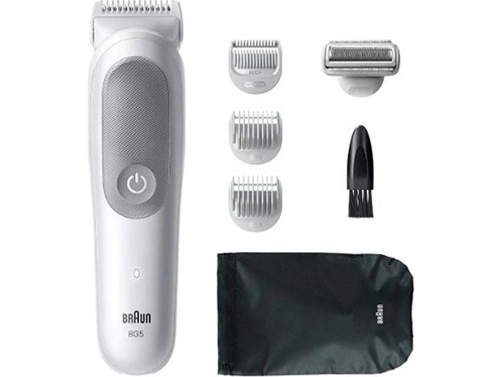 Zastřihovač Braun BG5550 kombinuje technologii SkinGuard pro citlivou pokožku, omyvatelné provedení pro použití ve sprše a sadu nástavců pro délky 0,5–5 mm. Díky li-ion baterii (100 minut provozu) a rychlému nabití je ideální pro pravidelnou domácí péči těla i detailní úpravy.