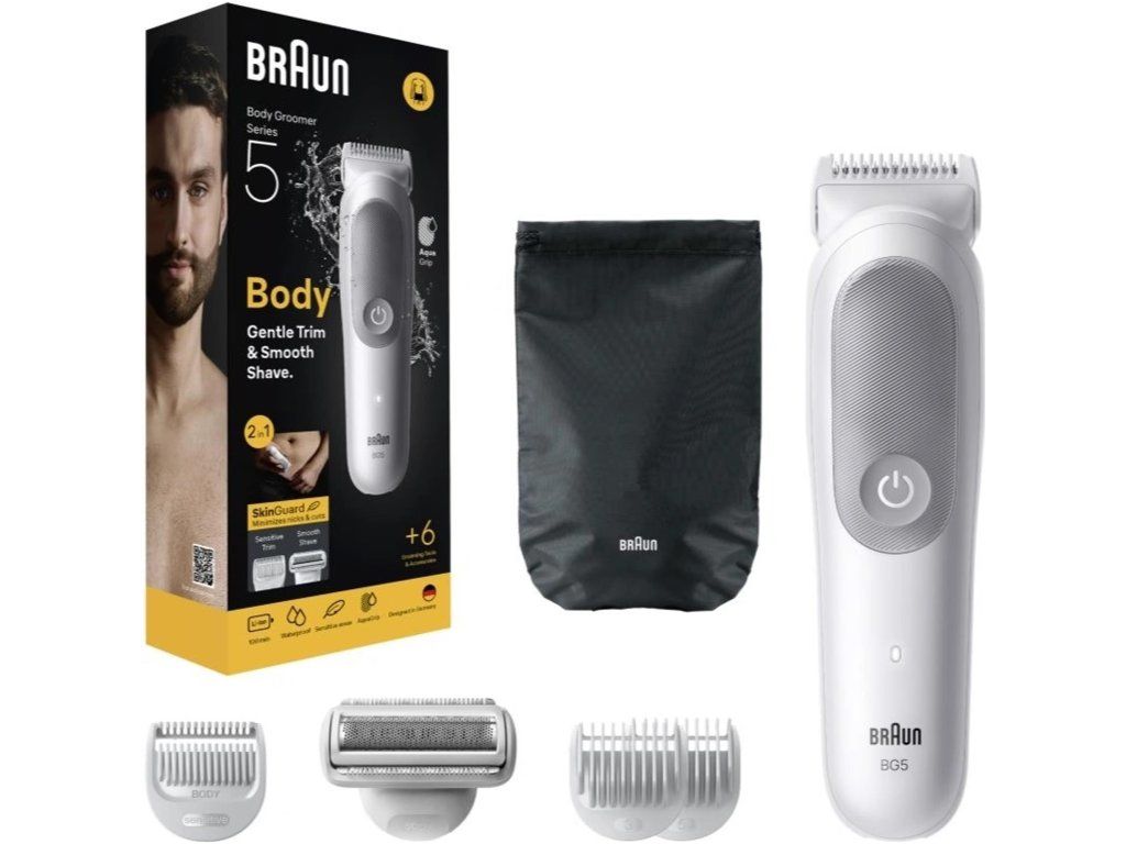 Braun BG5550 tělový zastřihovač, SkinGuard pro citlivou pokožku, 100 min provozu, 100% vodotěsný, nástavce