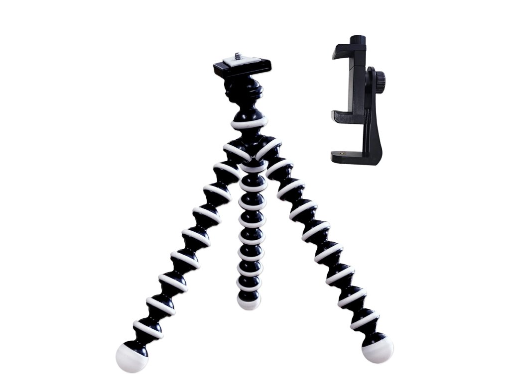 Lehký, odolný a flexibilní stativ - tripod pro mobilní telefony, kamery a fotoaparáty. Lze postavit, nebo připevnit k téměř jakémukoliv povrchu.