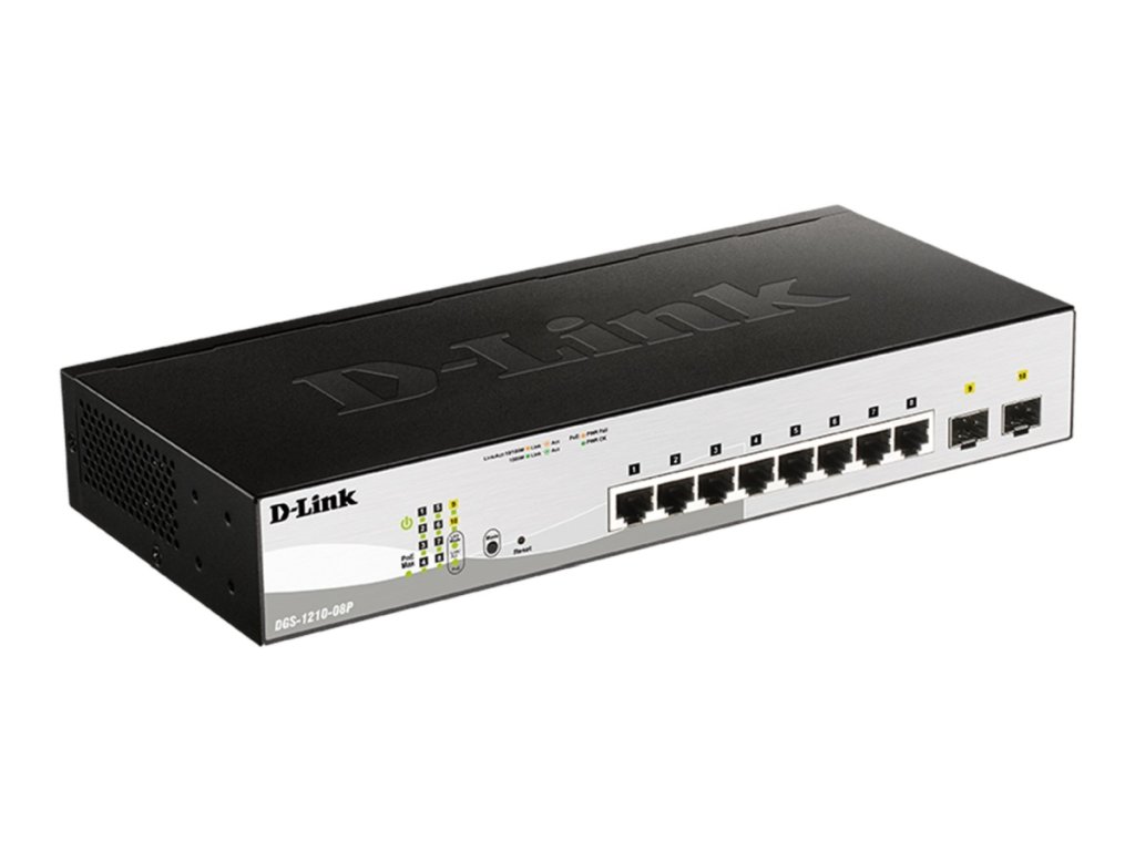 D-Link DGS-1210-08P Smart PoE switch, 8x GbE PoE+, 2x SFP, PoE 65W, fanless