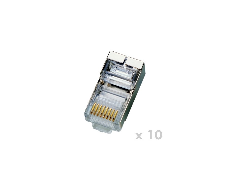 STP stíněný konektor RJ45 (8p8c) pro zakončení kabelů strukturované kabeláže typu drát. Balení obsahuje 10 ks. Provedení pro: drát (solid) Kategorie: cat.5e Stínění: anoKód produktu: SWSDTM00079