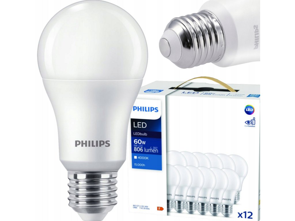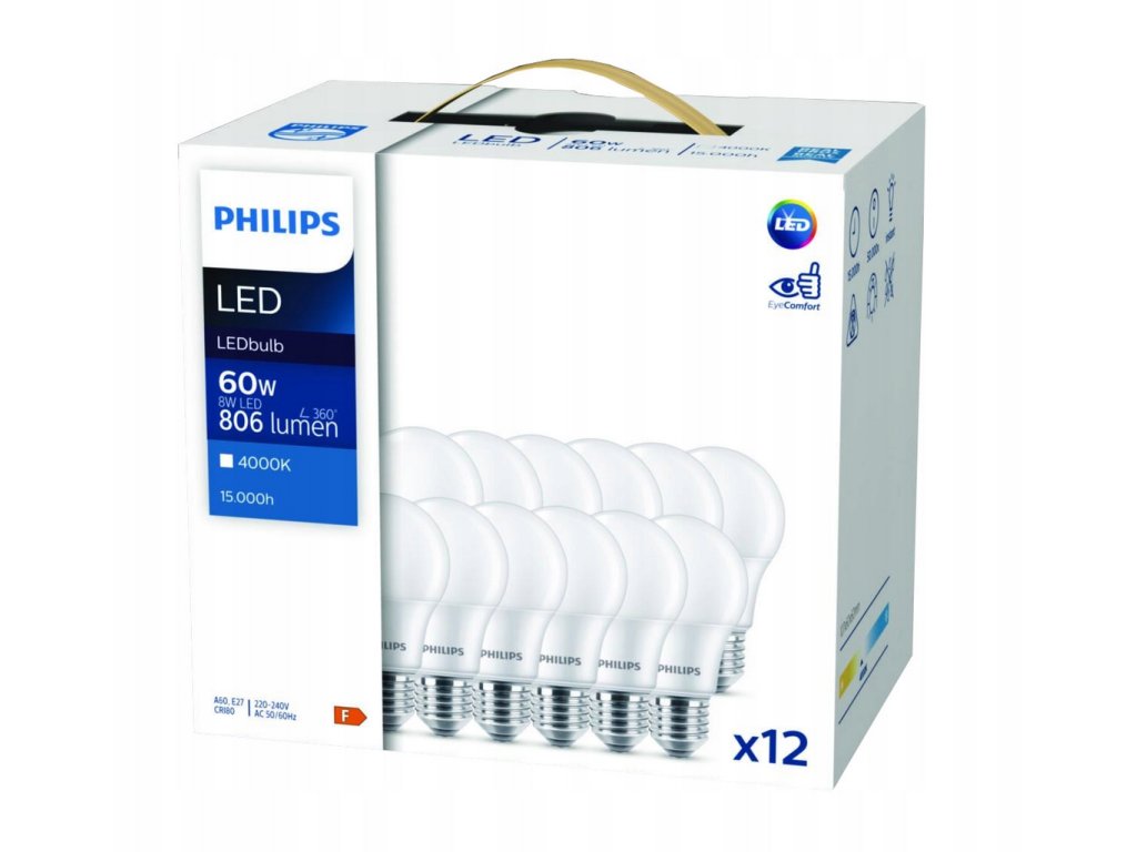 12x LED žárovka Philips E27 - 8W - 806lm - 4000K