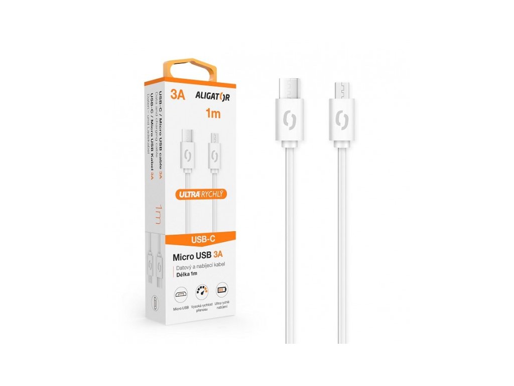ALIGATOR Datový kabel POWER 3A, USB-C/microUSB bílý