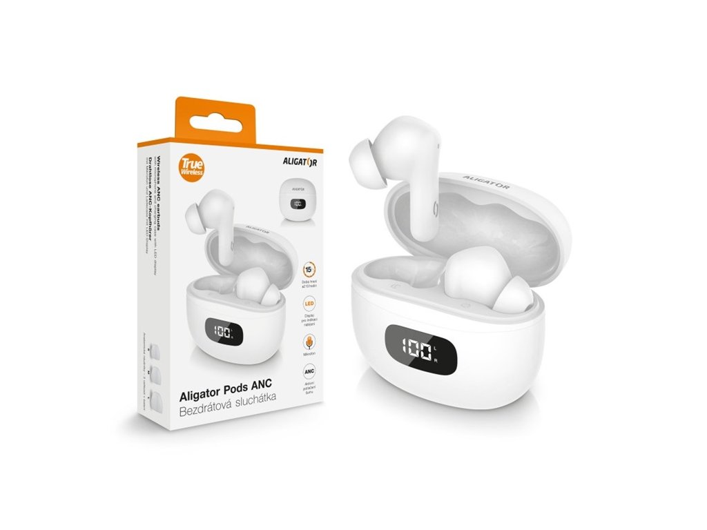 Aligator TWS sluchátka Pods ANC TWS08WT