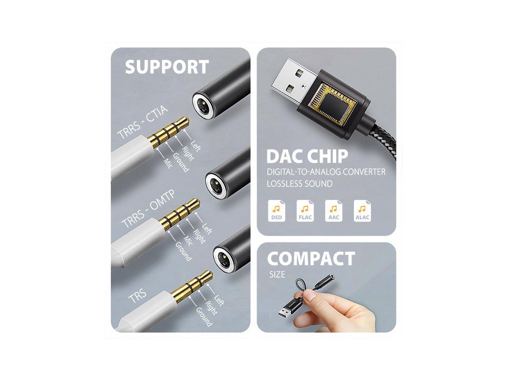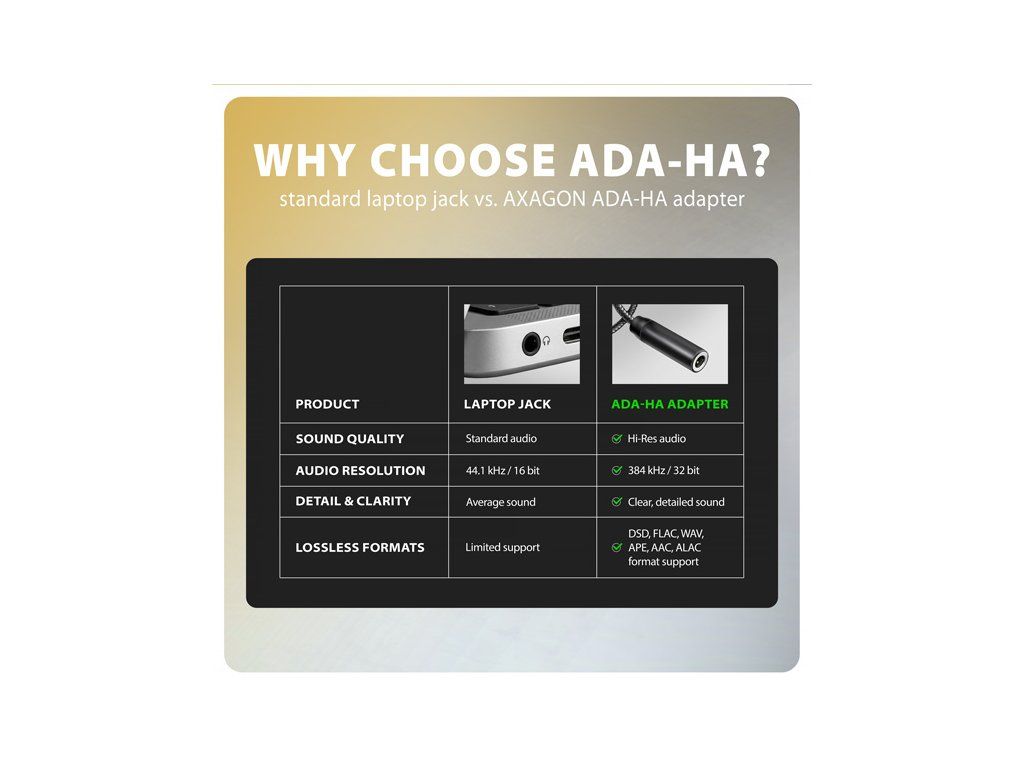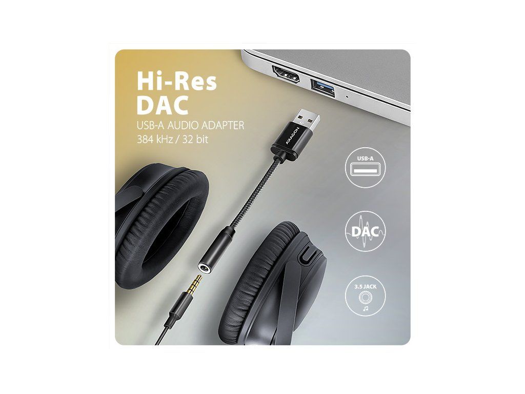 AXAGON ADA-HA, USB-A na 3.5mm jack Hi-Res DAC audio adaptér, 384kHz/32bit, stereo