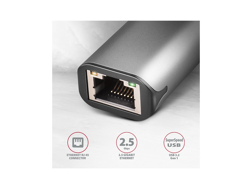 AXAGON ADE-25RC USB-C 3.2 Gen 1 - 2.5 Gigabit Ethernet síťová karta, Realtek 8156, auto install, šedá