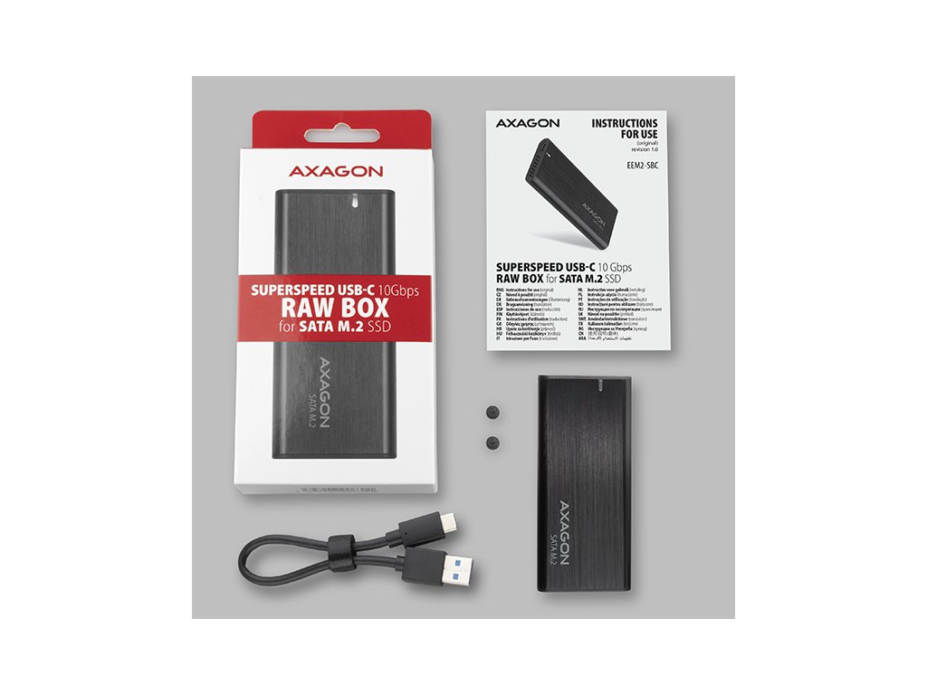 AXAGON EEM2-SBC, USB-C 3.2 Gen 2 - M.2 SATA SSD kovový RAW box, bezšroubkový