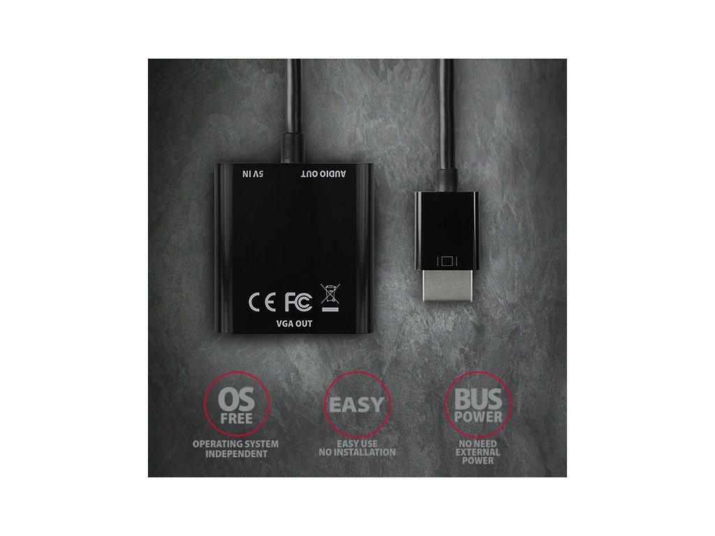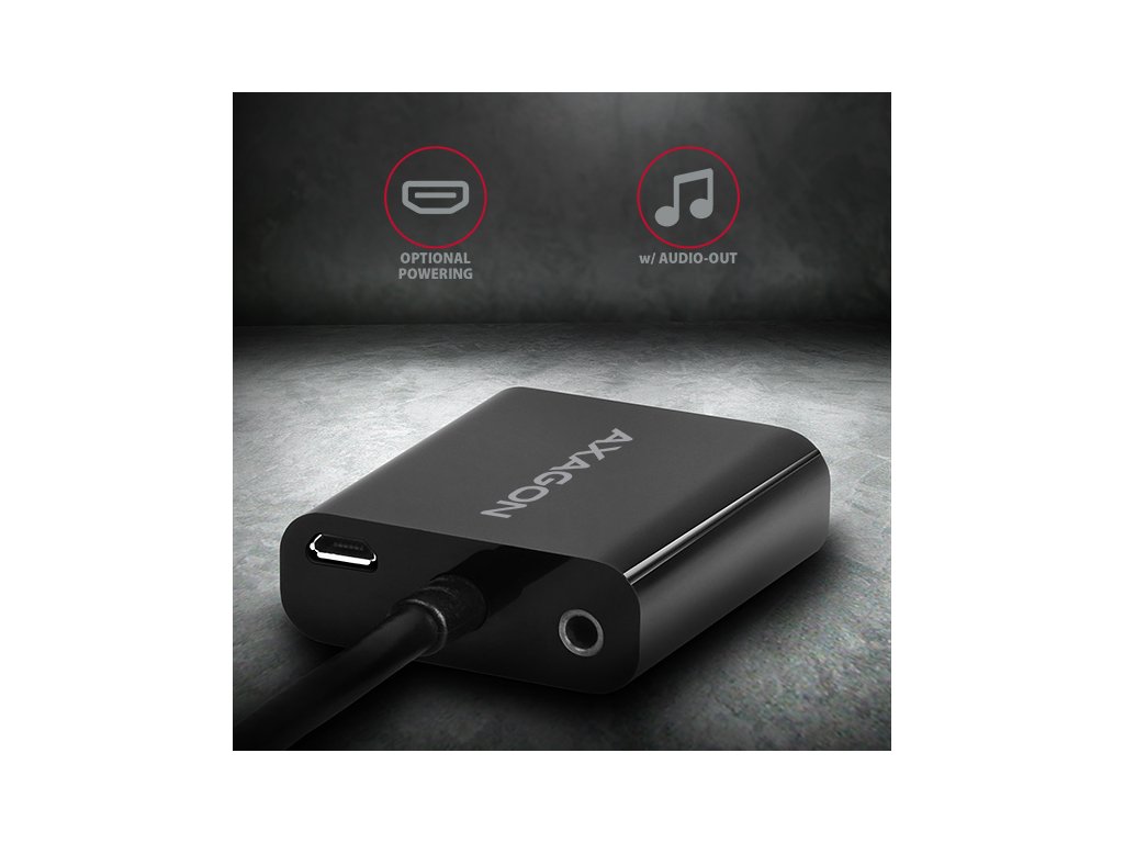 AXAGON RVH-VGAN, HDMI -> VGA redukce / adaptér, FullHD, audio výstup, micro USB nap. konektor