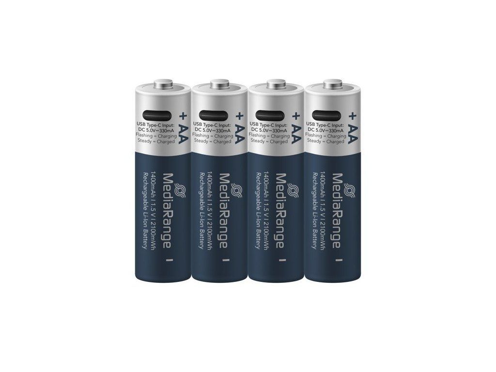 Baterie AA MediaRange nabíjecí USB-C Li-Ion , 1,5V, 1400 mAh, 4ks