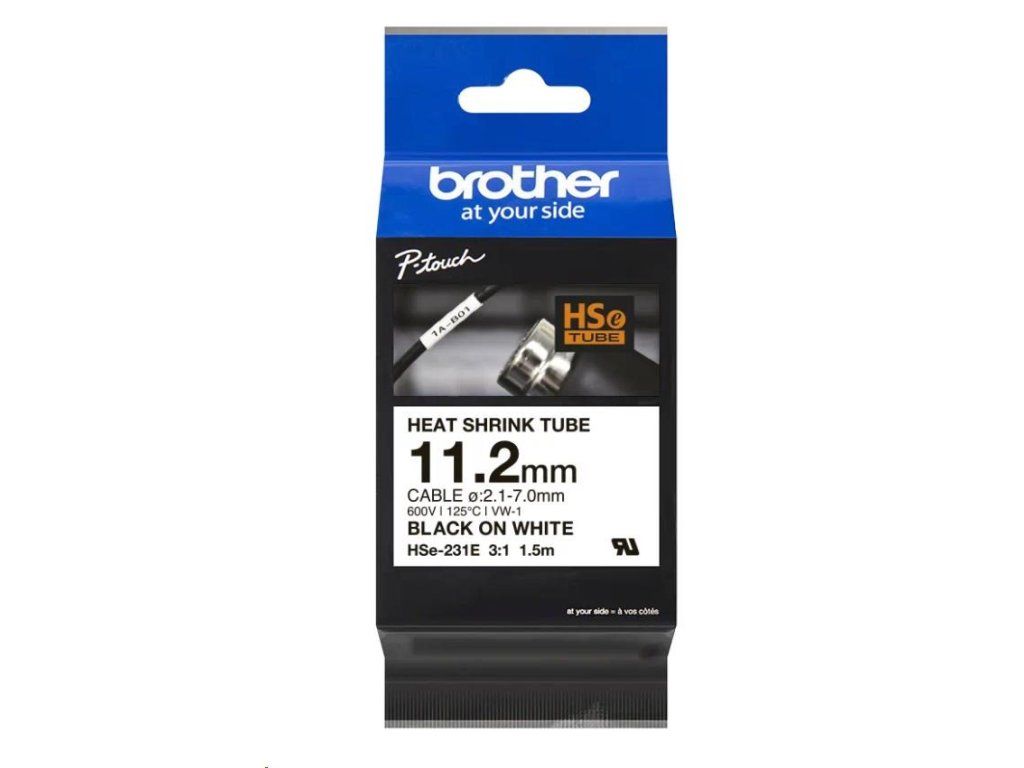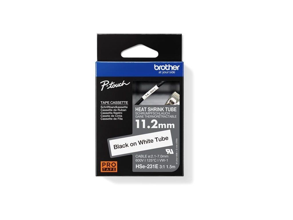 BROTHER smršťovací bužírka - HSE-231E bílá pro E300VP H300 H500 E550 P700 P750 D800 P900 P950 - 11,2mm / 2,1-7mm / 3:1