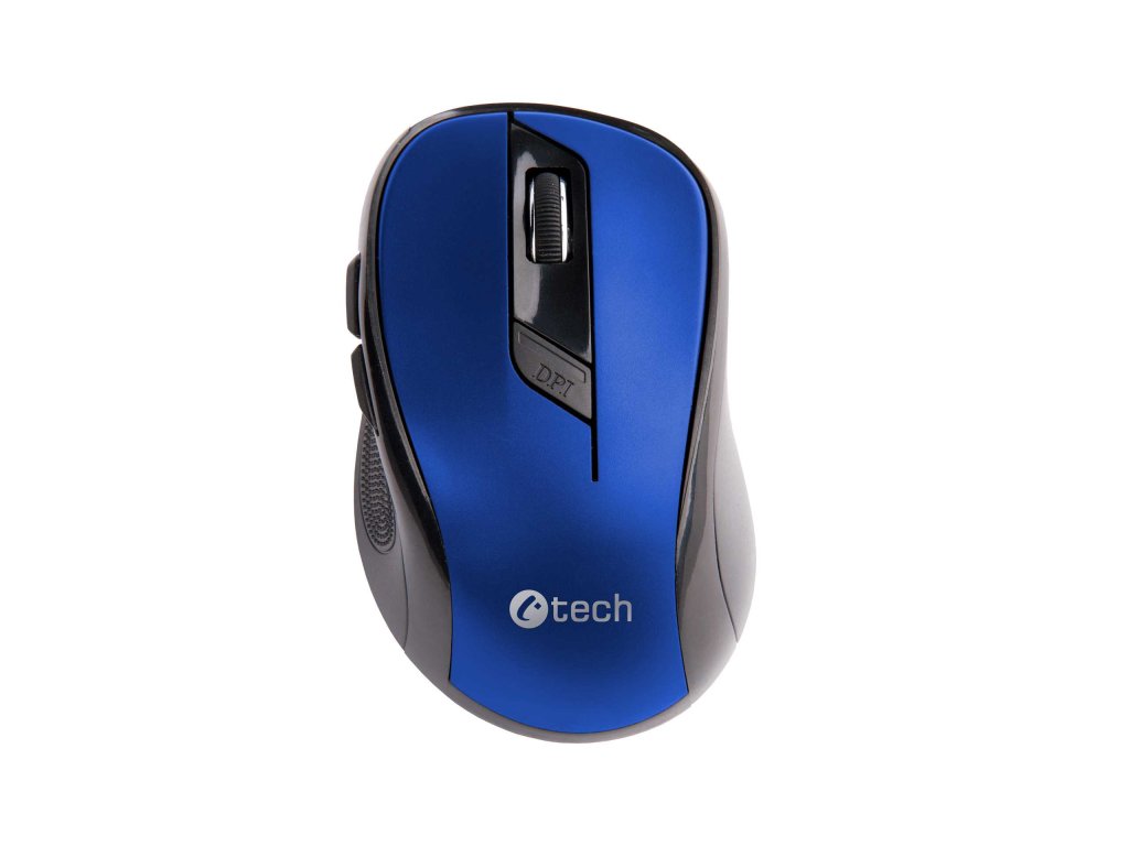 C-TECH myš WLM-02, černo-modrá, bezdrátová, 1600DPI, 6 tlačítek, USB nano receiver