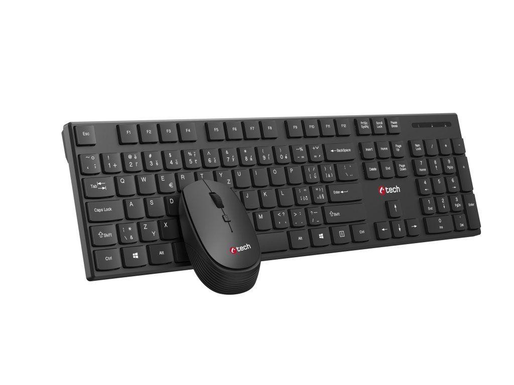 C-TECH WLKMC-03, bezdrátový set klávesnice s myší,nízký zdvih,USB, CZ/SK,černá
