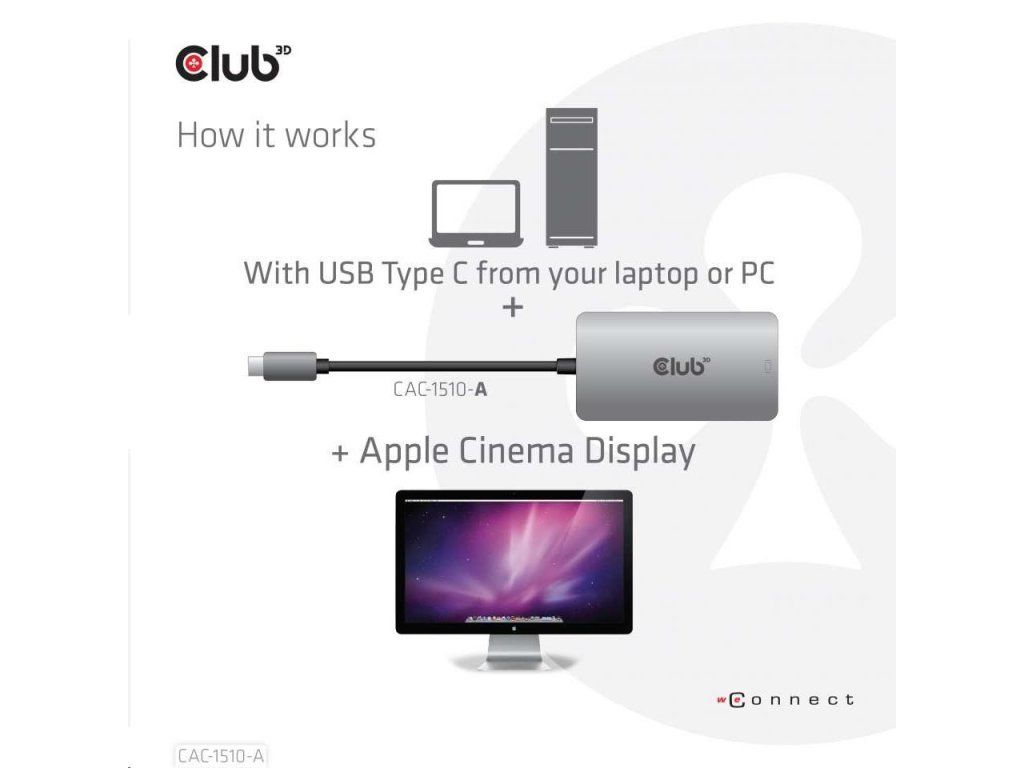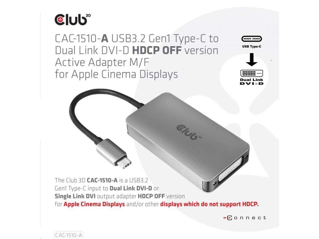 Club3D Adaptér aktivní USB 3.2 typ C na DVI-D Dual Link 4K30Hz pro Apple Cinema Display, HDCP off