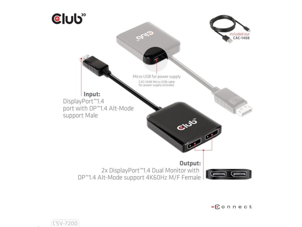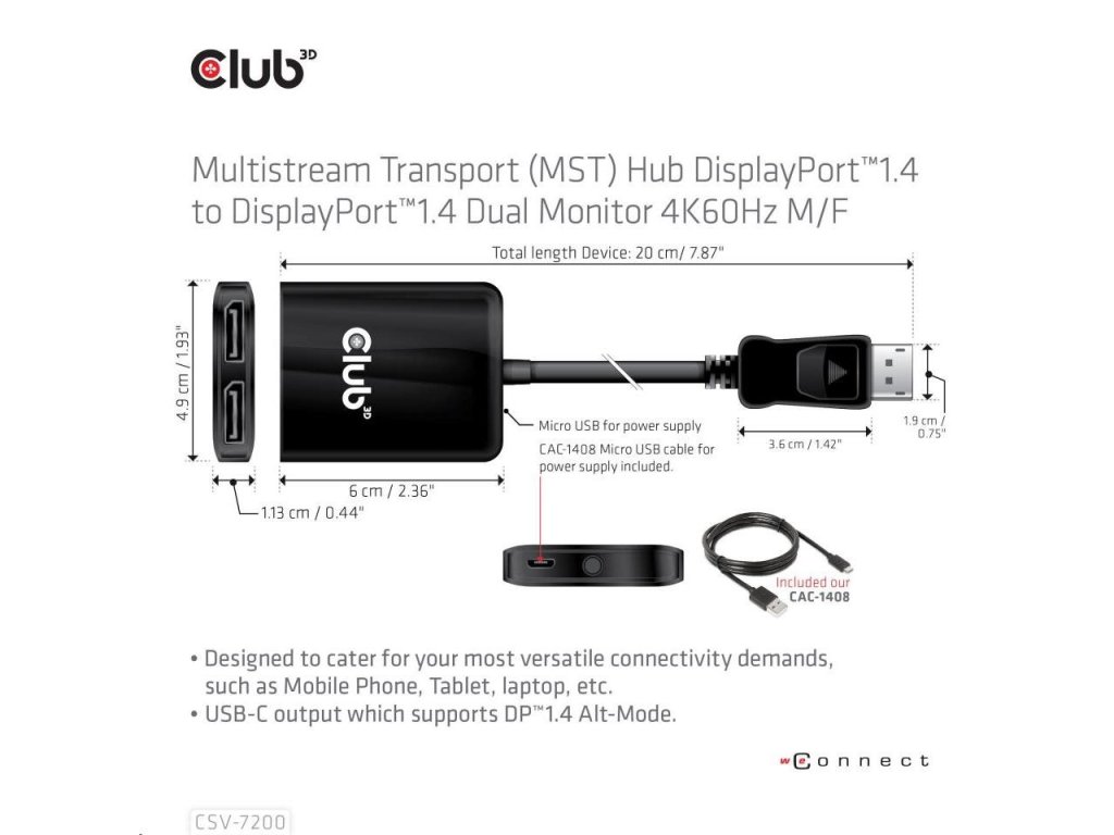 Club3D Video adaptér MST (Multi Stream Transport) DisplayPort 1.4 na DisplayPort 1.4 Dual Monitor 4K60Hz (M/F), černá