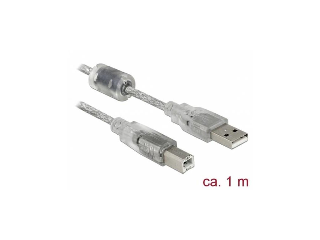 Delock Kabel USB 2.0 Typ-A samec > USB 2.0 Typ-B samec 1m transparentní