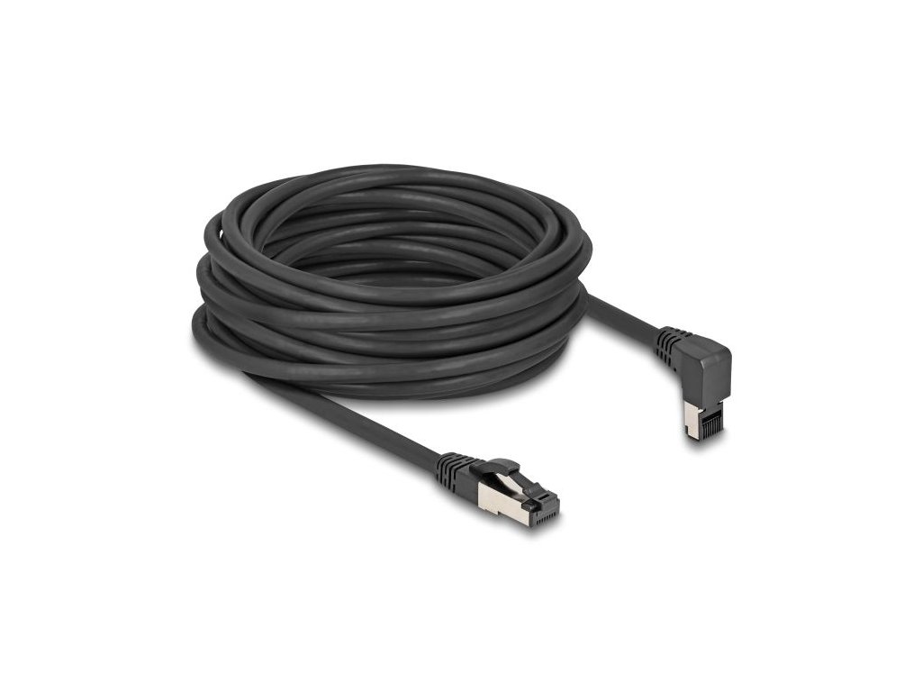 Delock Síťový kabel RJ45 Cat.8.1 S/FTP, zalomený nahoru o 90° / přímý, 10 m, černý