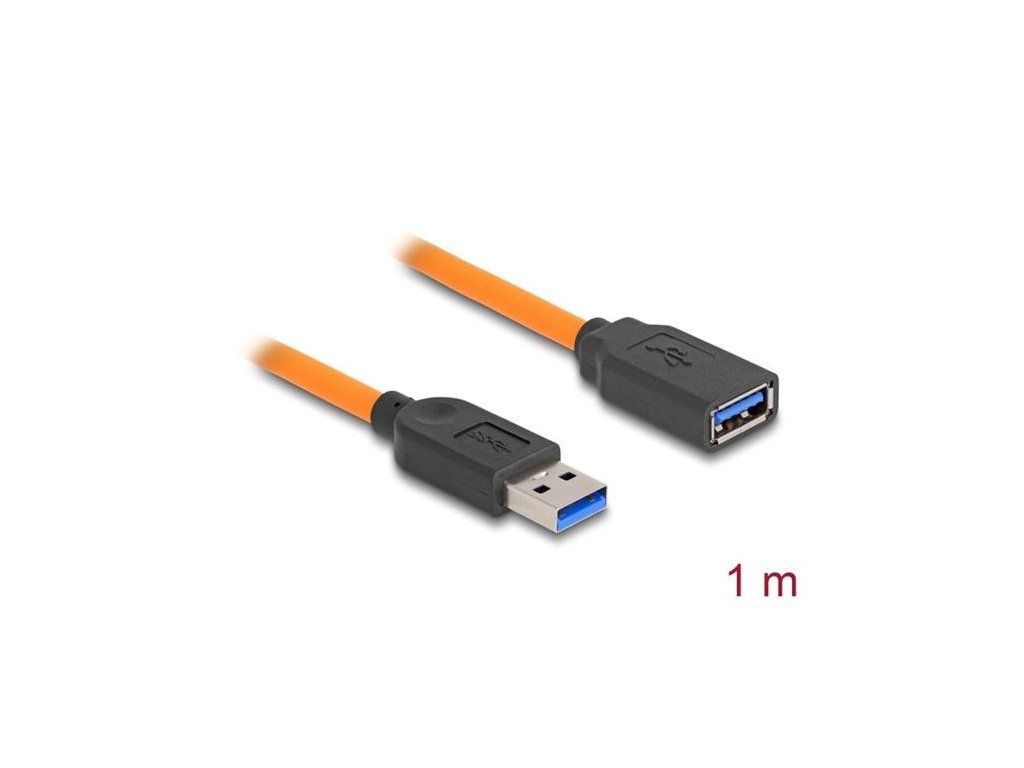Delock USB 5 Gbps kabel, ze zástrčky USB Typu-A na samice USB Typu-A, k focení s tetheringem, 1 m, oranžový