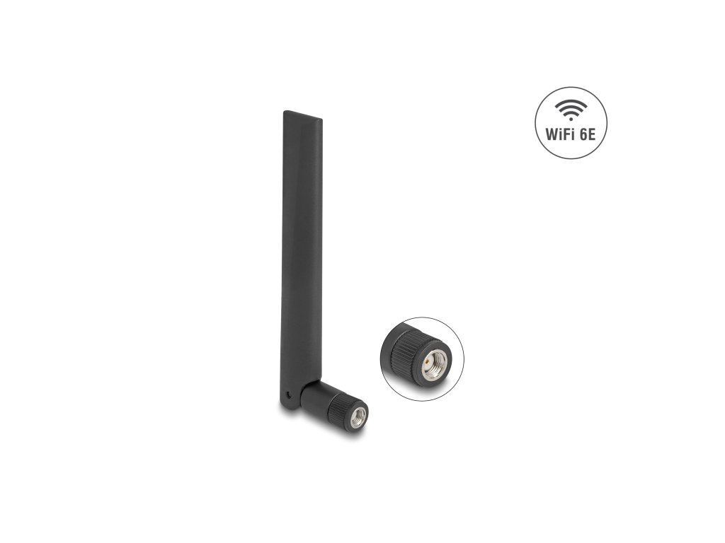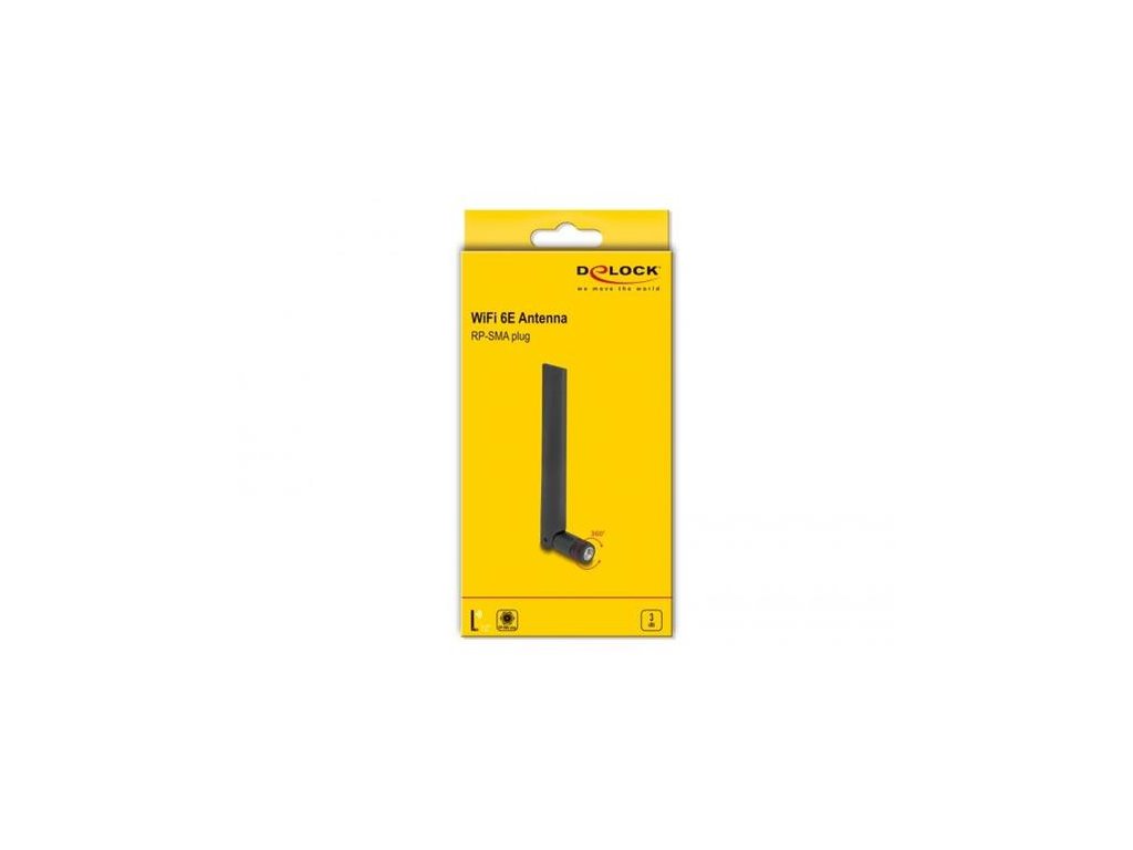 Delock WiFi 6E anténa RP-SMA samec 3 dBi všesměrová s nakloněným kloubem černá