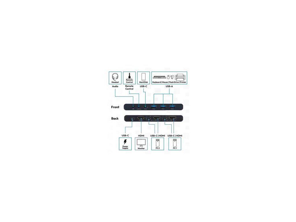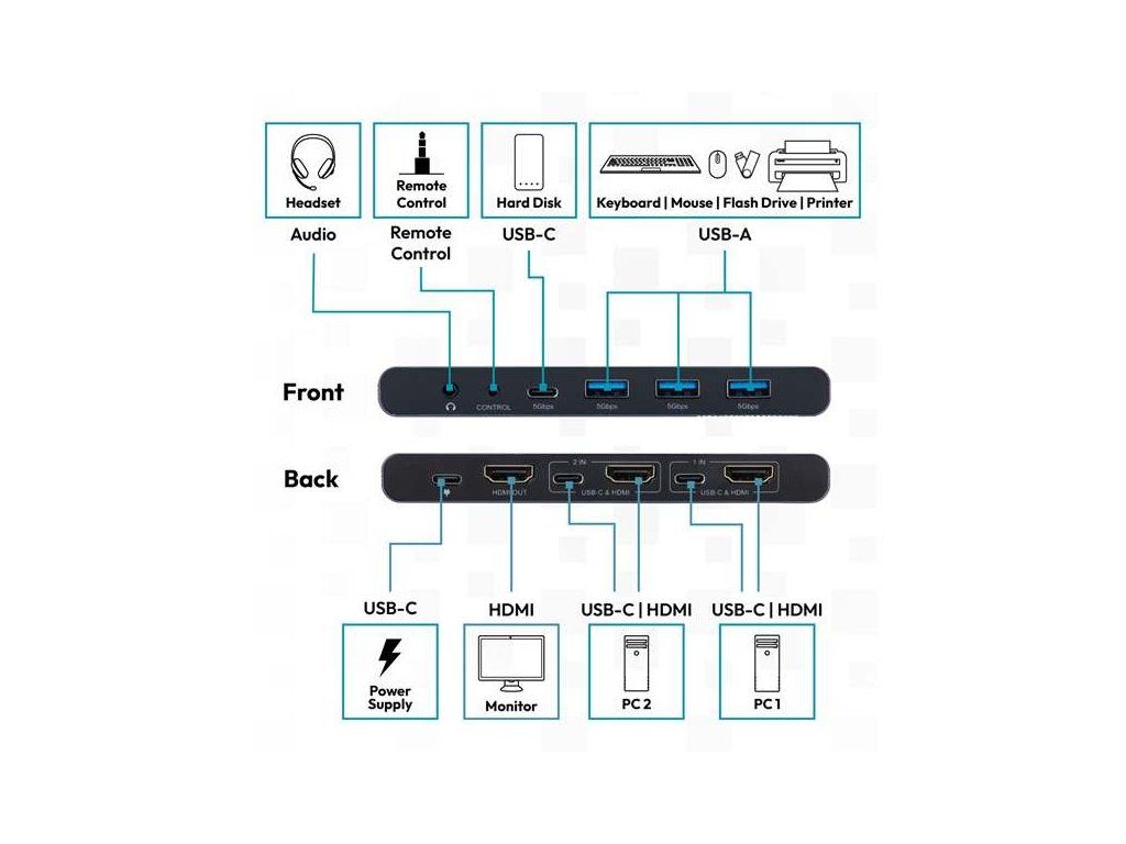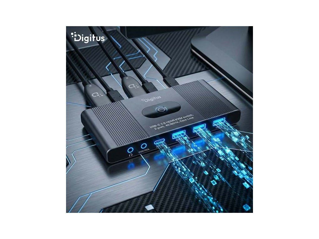 DIGITUS DS-12855 KVM Switch, 2portový, HDMI, USB 4K60Hz, Core Line