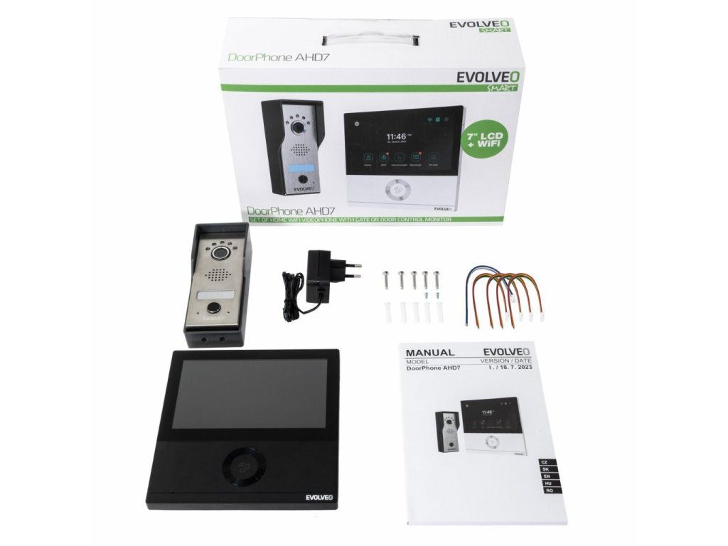 EVOLVEO DoorPhone AHD7, Sada domácího WiFi videotelefonu s ovládáním brány nebo dveří černý monitor