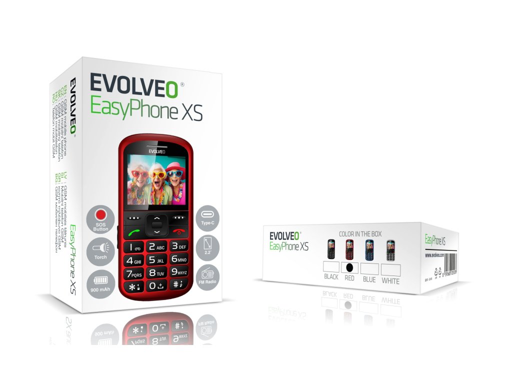 EVOLVEO EasyPhone XS, mobilní telefon pro seniory, červený