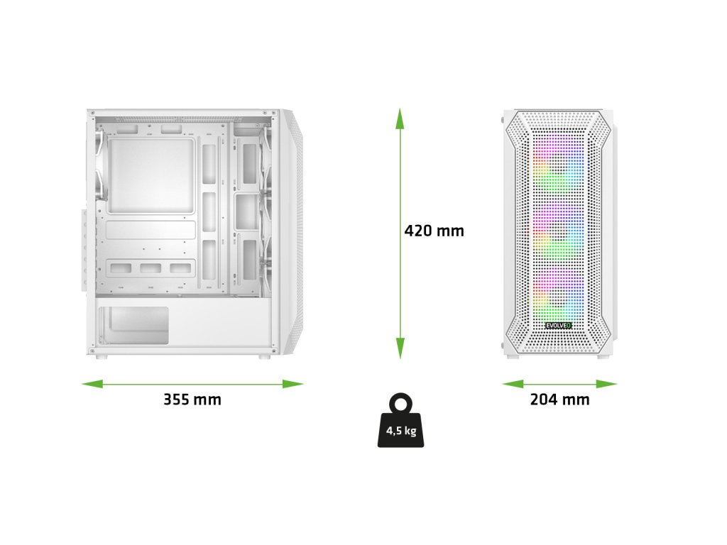 EVOLVEO Xenon, Midi Tower/ 4x ARGB/ mesh+sklo