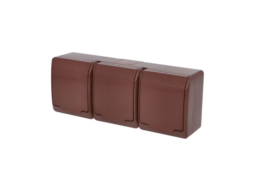 FAMATEL GALATEA Zásuvka 2P+PE 3-násobná vodorovná IP44 hnědá