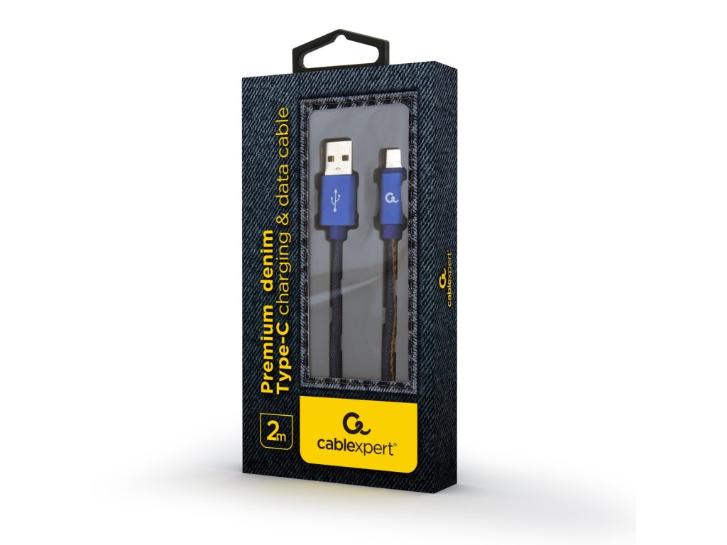 Gembird oplétaný denim USB-A/USB-C kabel 2m