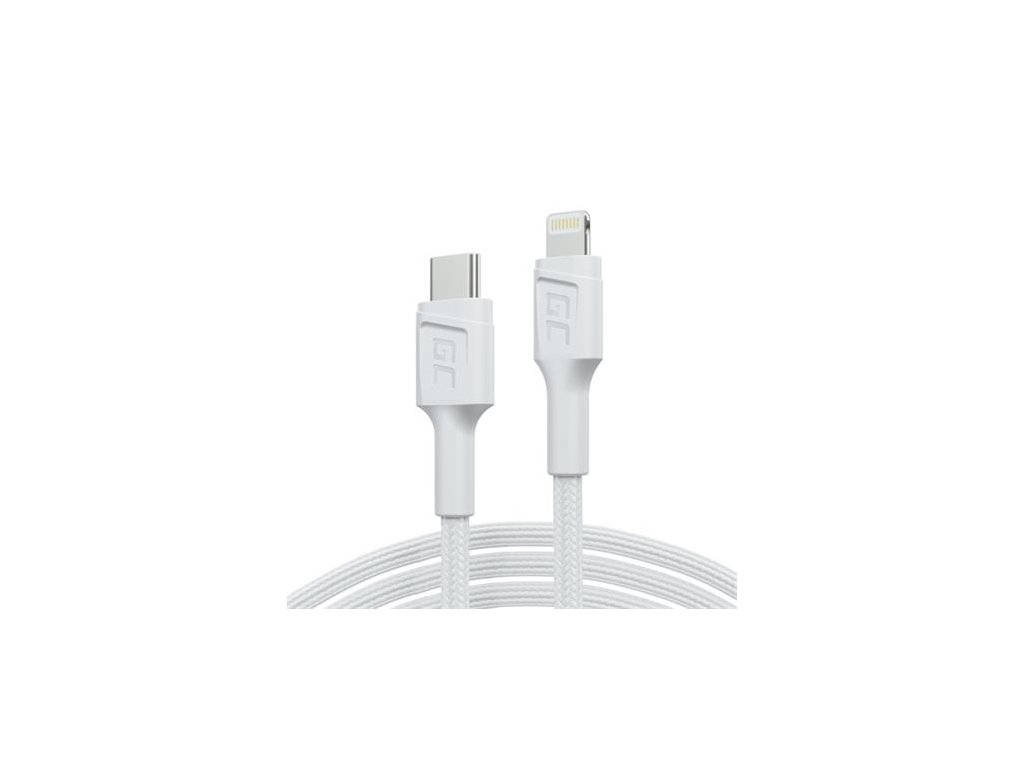 Green Cell PowerStream Bílý kabel Lightning - USB-C 1m MFi s rychlým nabíjením Power Delivery, pro Apple iPhone