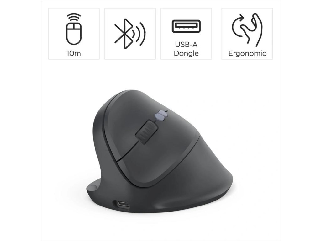 Hama vertikální ergonomická bezdrátová myš EWM-600L, pro leváky, nabíjecí, Multi Device