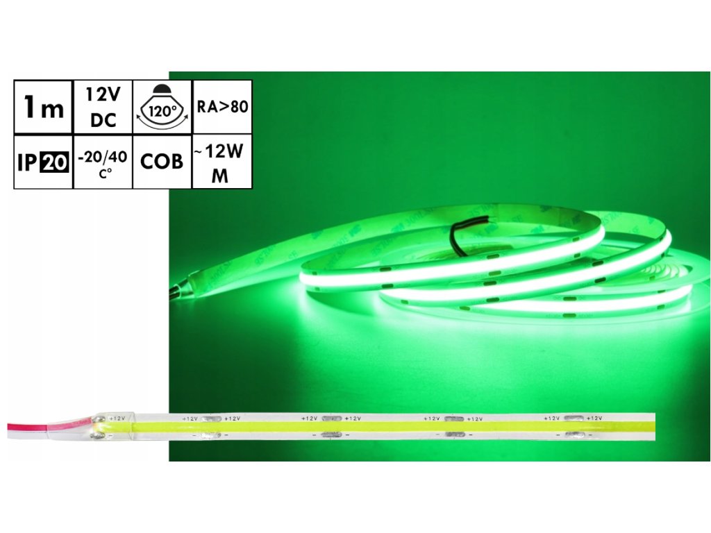 Homogenní Neon COB LED pásek 12V 50m ZELENÝ