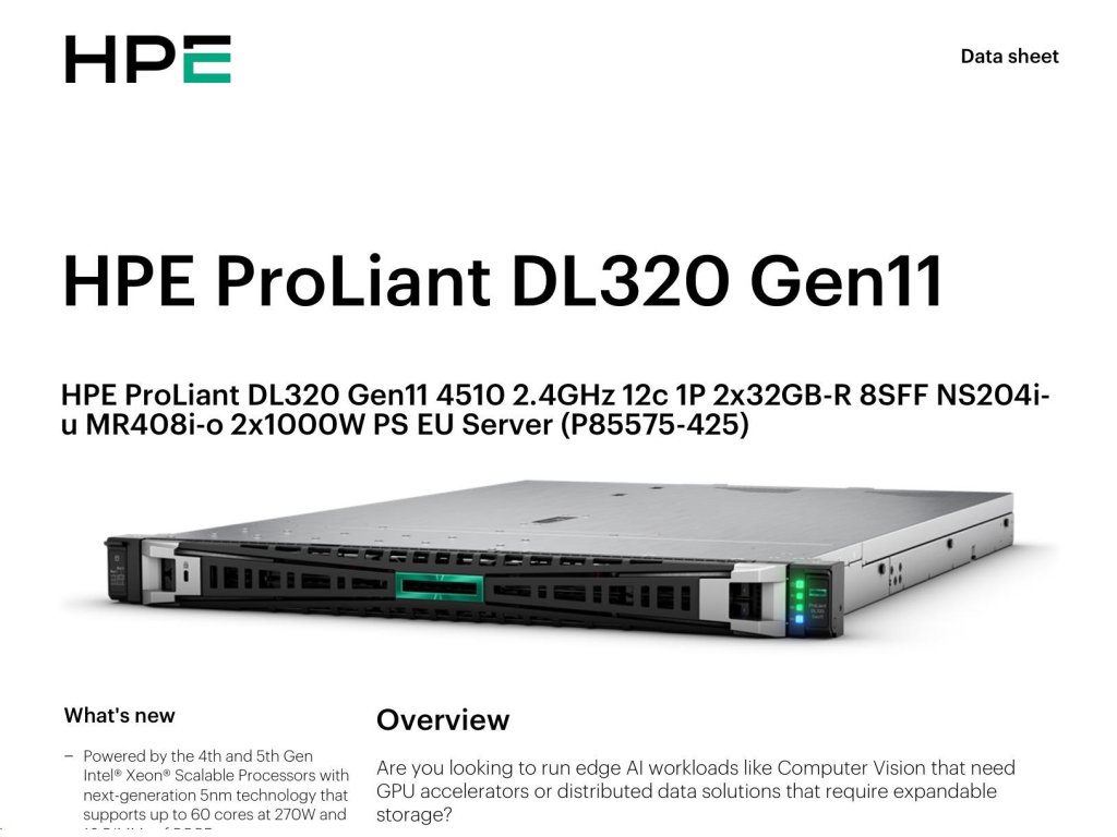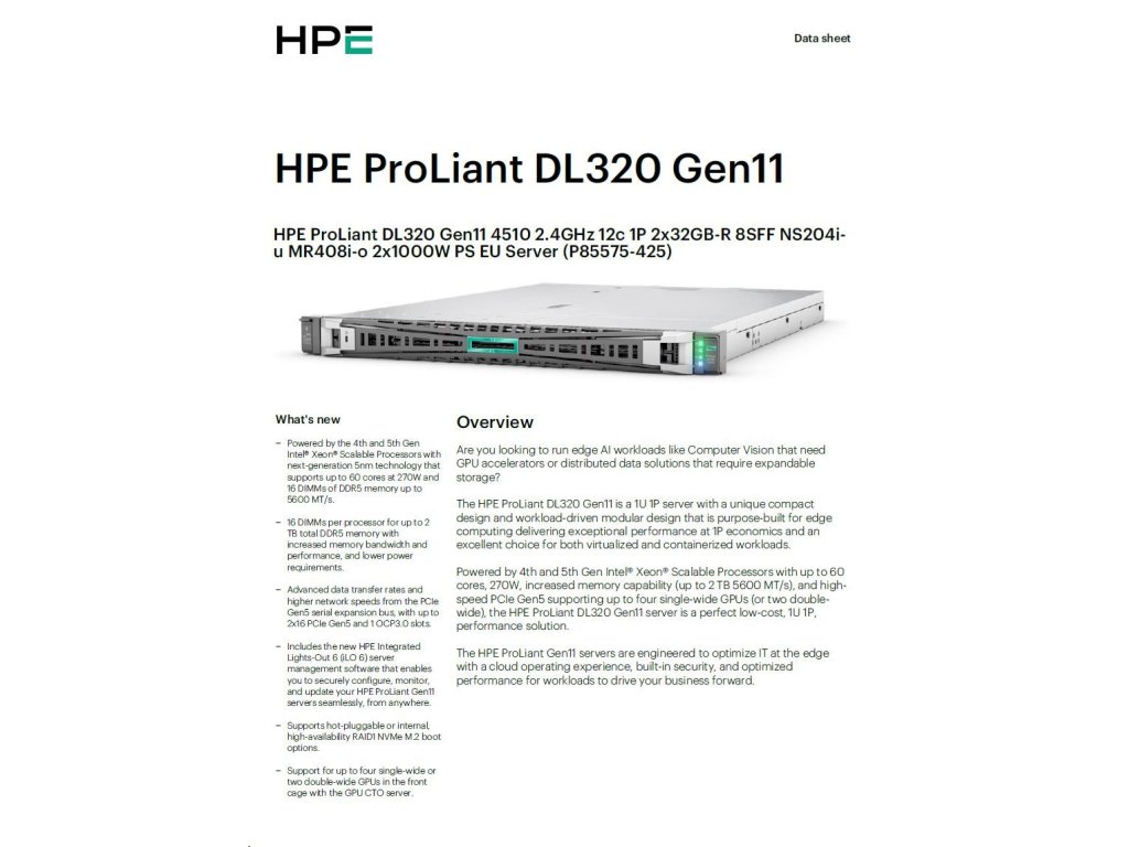 HPE PL DL320g11 4510 (2.4/12C) 2x32G (p64706) NS204(2x480) MR408i-o 8SFF 2x1000W 2p1G Smart Choice