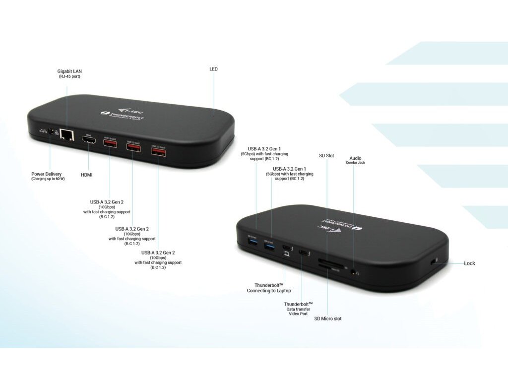 I-tec Thunderbolt 3 Dual 4K Docking Station, Power Delivery 60W