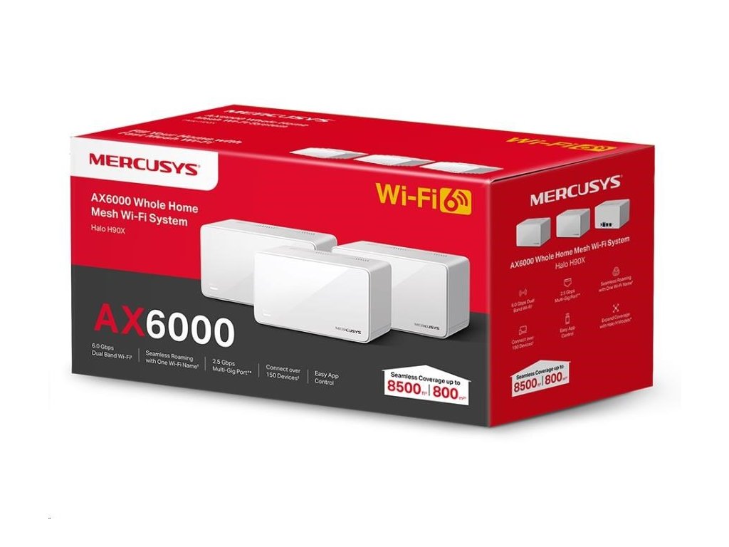 MERCUSYS Halo H90X(3-pack) WiFi6 Mesh (AX6000,2,4GHz/5GHz,1x2,5GbELAN/WAN,2xGbELAN/WAN)