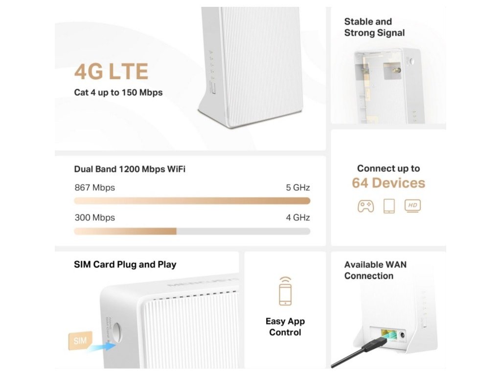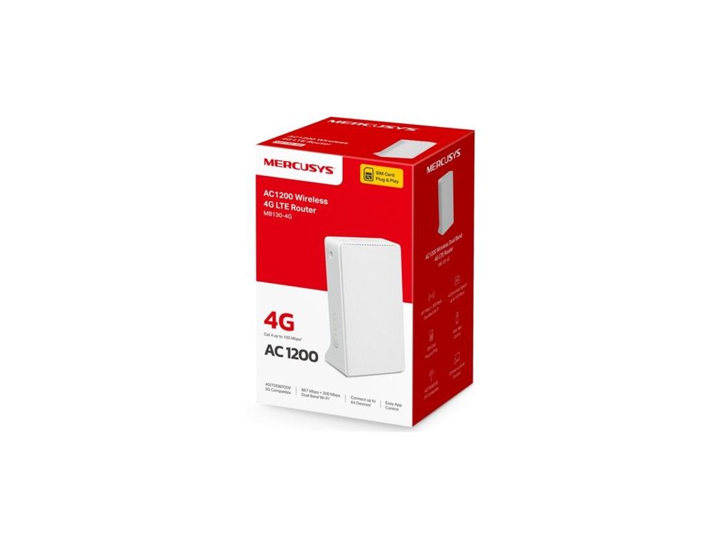 MERCUSYS MB130-4G - AC1200 4G LTE Modem a Router, 2x LAN port